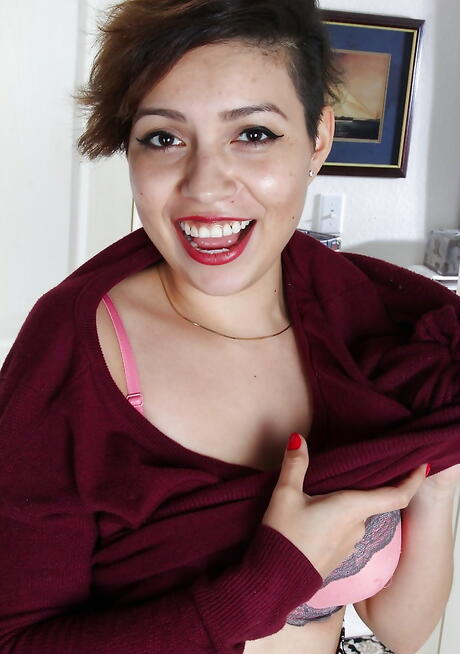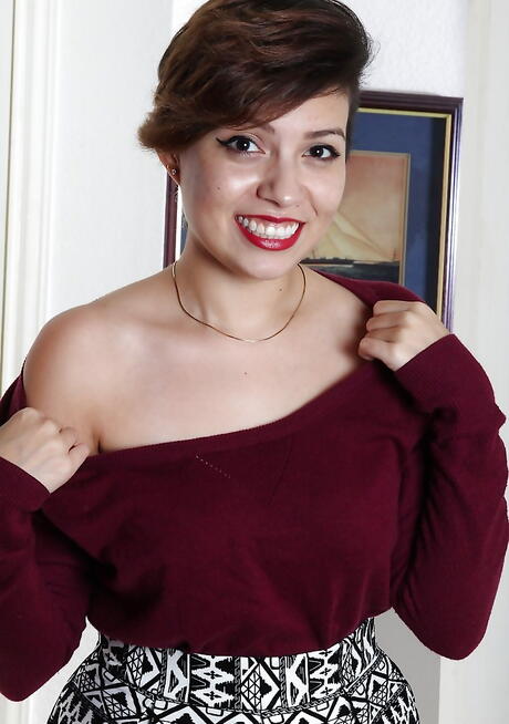 Foxy american teen Natalie Odom showing big hooters and hairy twat