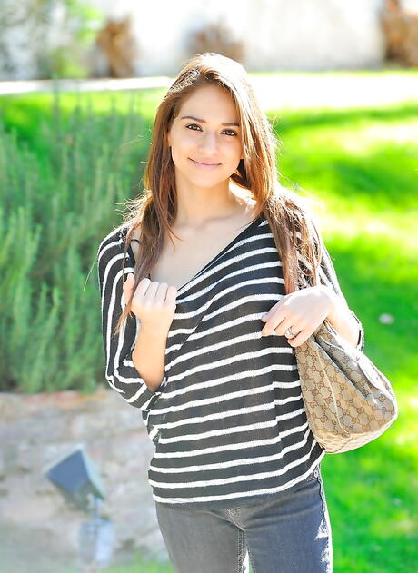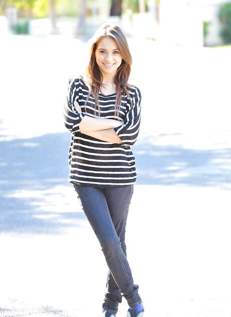 Foxy american teen Sara Luvv exhibiting small tits and sexy butt outdoor