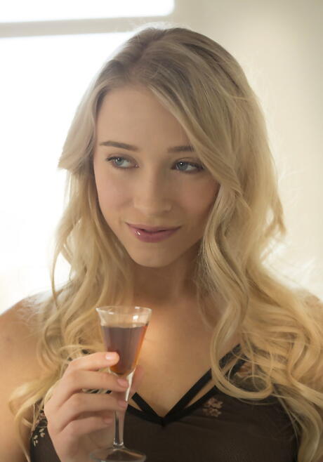 Foxy blond teen Riley Anne in sexy panties revealing her ass and spreading her legs