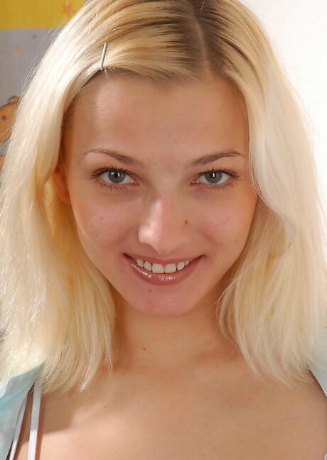 Foxy blonde young Mary in hot panties shows big knockers and bald pussy