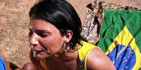 Foxy brazilian milf Dani Lopes take in mouth black cock and enjoys a cum blast in mouth outside