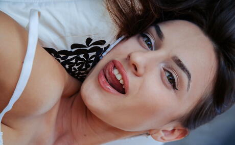Foxy brunette teen Gloria Sol makes some foot fetish