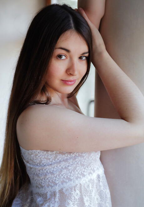 Foxy brunette youthful Lukki Lima showing tiny tits and jerking off