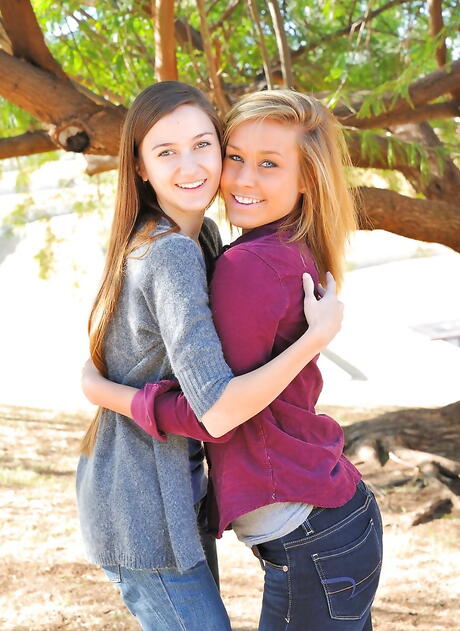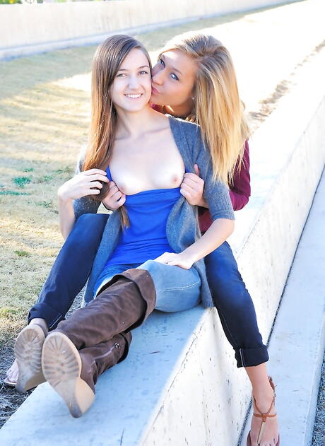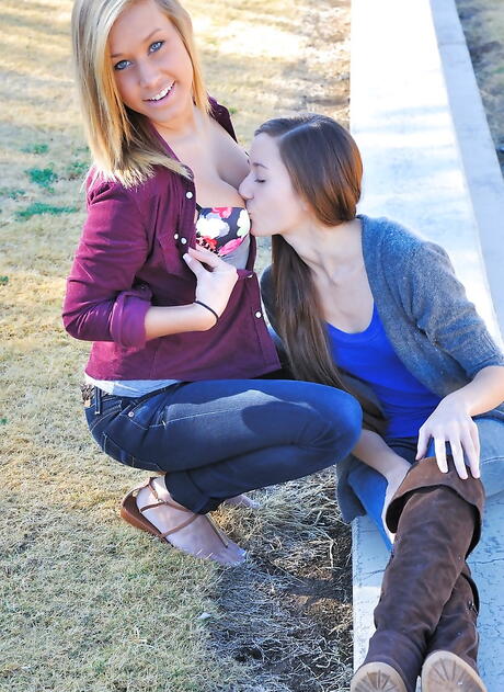 Foxy chicks Claire Evans and Kennedy Leigh licking hot pussies in the hot lesbian sex outdoor