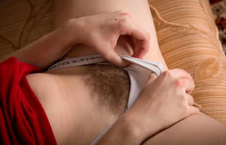 Foxy dark hair babe Jada in hot lingerie exhibits tiny tits and hairy pussy