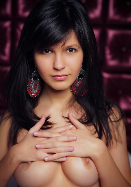 Foxy dark hair teen Zelda B in lingerie revealing her butt and shaved pussy