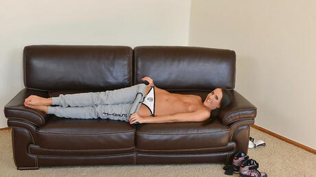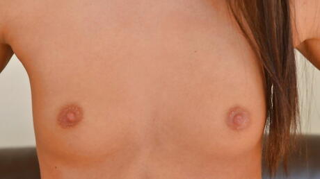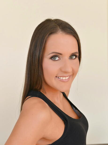Foxy hungarian dark hair cutie Adriana Brill exposes small tits and jerks off