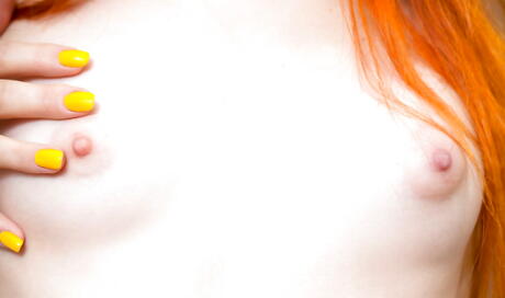 Foxy red-haired teen Kiva in fancy skirt uncovers tiny tits and puts a toy in her cunt