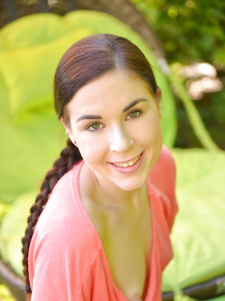 Foxy spanish youthful Amber Nevada revealing tiny tits and masturbating outdoor