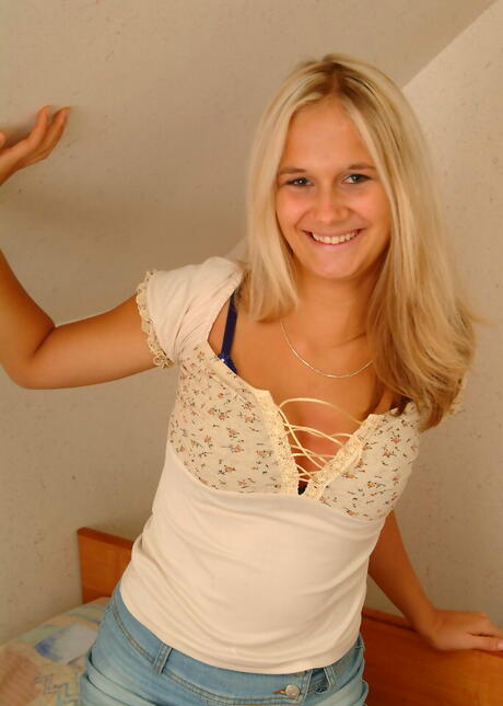 Foxy teen Alice bares her ass in lingerie and jerking off