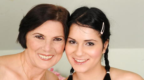 Foxy women Margo T. and Naomie enjoy some playful lesbian foreplay