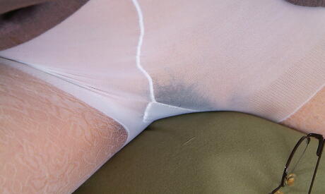 Foxy youthful Kuki in hot pantyhose exposing small tits and hairy pussy