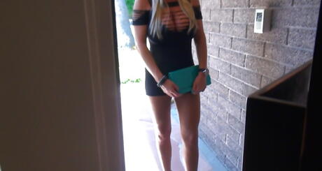 Glamorous american blonde wife Sandra Otterson in nice skirt showing big boobies and ass