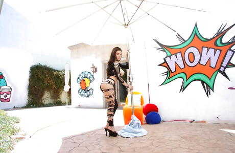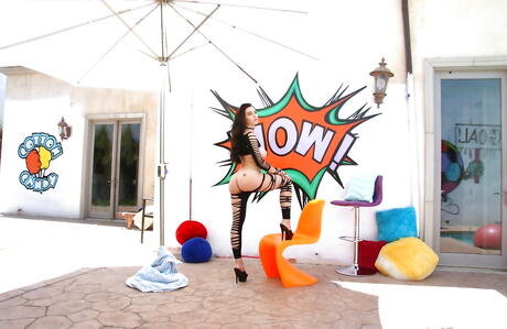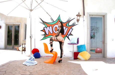 Glamorous american dark-haired cutie Lana Rhoades bares big knockers and sexy ass