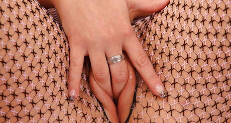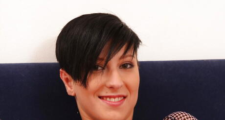 Glamorous dark hair cutie Emylia Argan in fancy pantyhose baring big knockers and masturbating