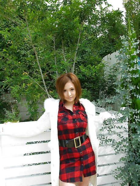 Glamorous japanese babe Yui Aoyama in hot undies shows big boobies and hot butt outside