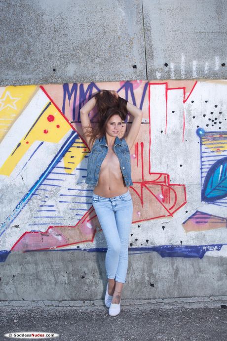 Bashful teen Barbara Vie bares it all on a blanket in a field