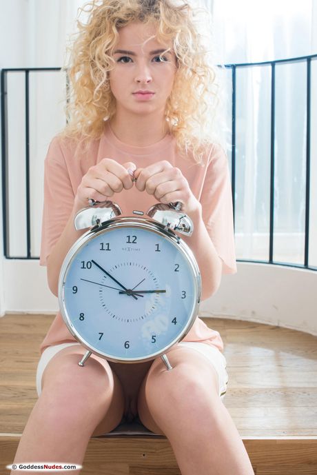 Blonde teen Kai A displays her beautiful ass and pussy on the stairs