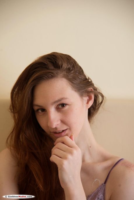 Delightful teen Maryl poses naked in her bedroom with her hairy pussy on display