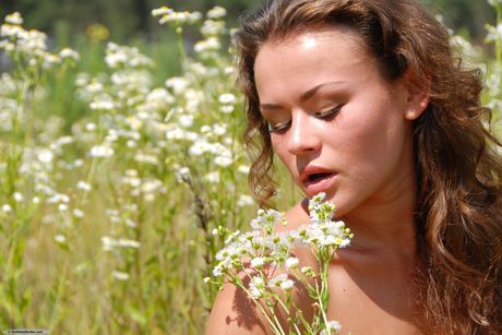Lean teen Olexa shows her small tits and poses nude in a solo