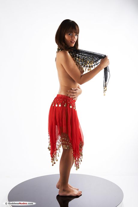 Lean teen Rita Peach shows her small tits and poses nude in a solo