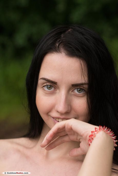 Lean teen Veronica Snezna shows her tiny tits and shaved pussy in a solo