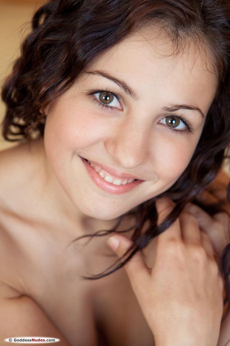 Pure teen Sophia F exhibits her tiny tits and poses naked in a solo