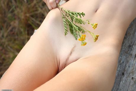 Skinny blonde Hellan shows her small tits and exhibits perfect shape in a solo