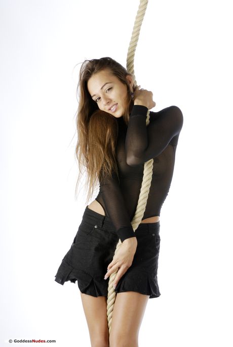 Skinny teen Dominika wraps herself in rope while posing nude in black heels