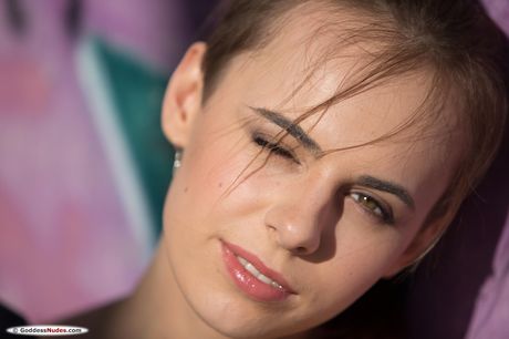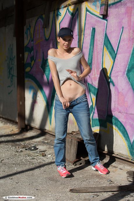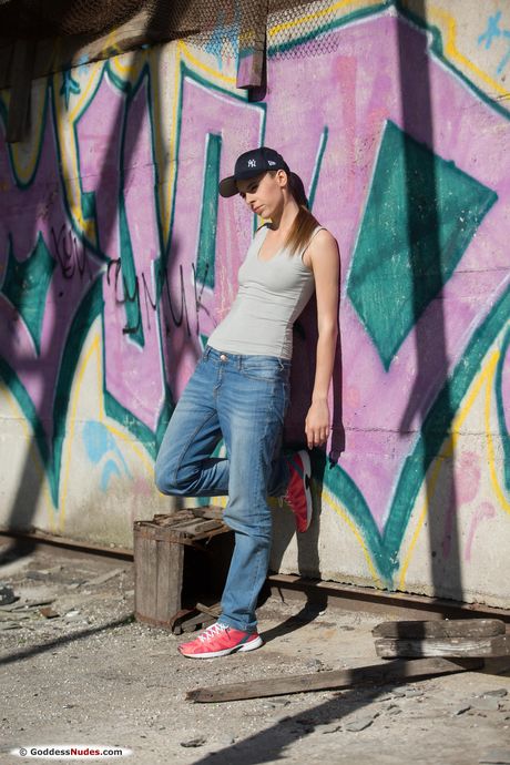 Skinny teen Gracie strips and poses nude in the middle of the road