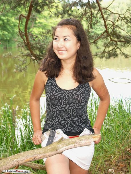 Skinny teen Sofi highlights her tight slit while naked on a beach
