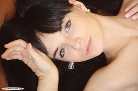 Solo girl with long hair and a pretty face gets naked without hesitation
