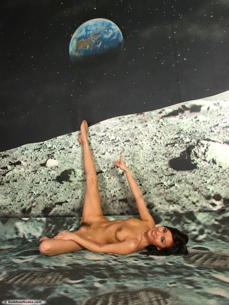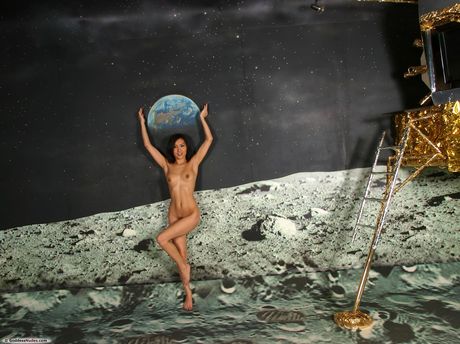 Svelte teen with a beautiful face Agnes poses naked in a space suit