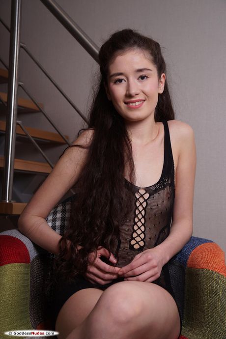 Sweet brunette Sherie shows her small tits and trimmed pussy in a solo