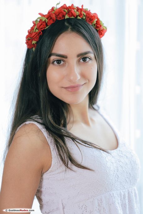 Tender teen Cira Nerri eats strawberries while wearing a crown of flowers