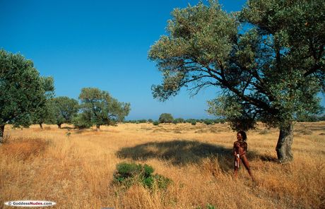 Thin teen Diana H shows her tiny tits & reveals her naked form on a jeep in the jungle