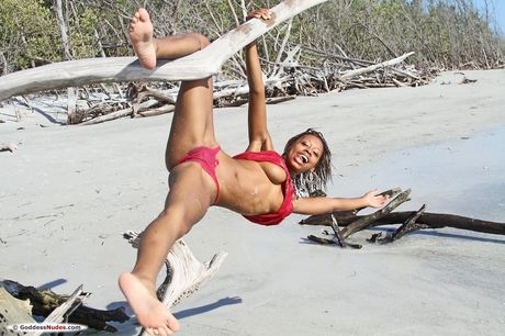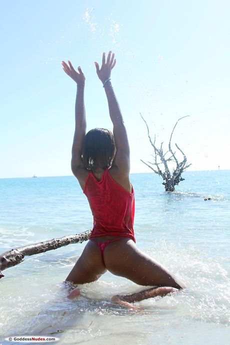 Tierra presents her big tits and shaved pussy as she poses naked in the pool