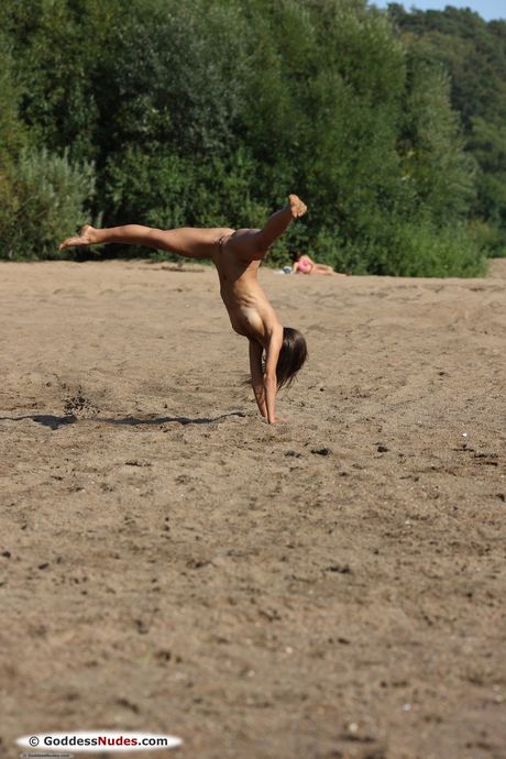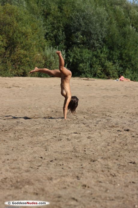 Young blonde Valentine highlights her tight ass while naked on a beach