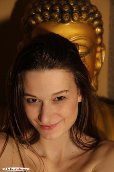 Young brunette Monna Dark models totally naked with grace