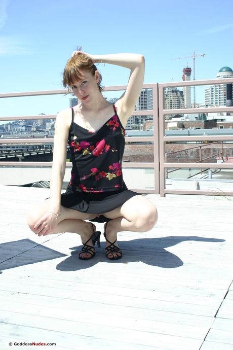 Young redhead Genevieve goes nude on a stool in a kitchen