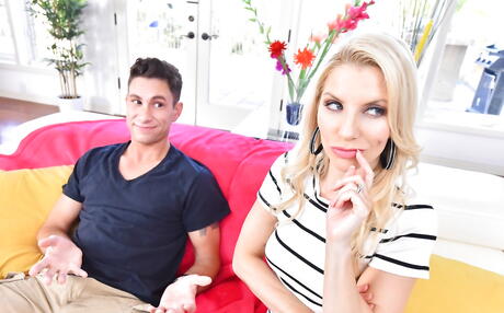 Gracile american blonde milf Ashley Fires in nice skirt take in mouth big dick and enjoys a facial