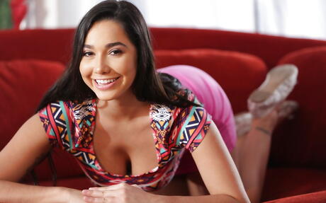 Gracile american dark hair youthful Karlee Grey in hot posing on camera