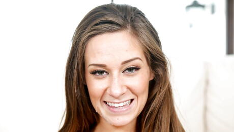 Gracile american dark-haired teen Cassidy Klein in shorts blows on huge cock and enjoys a cumshot in her mouth
