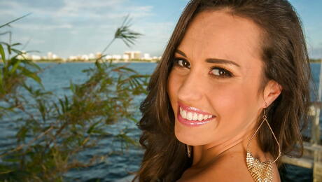 Gracile american hottie Kelsi Monroe in hot pantyhose exhibits tiny tits and hot butt outdoor
