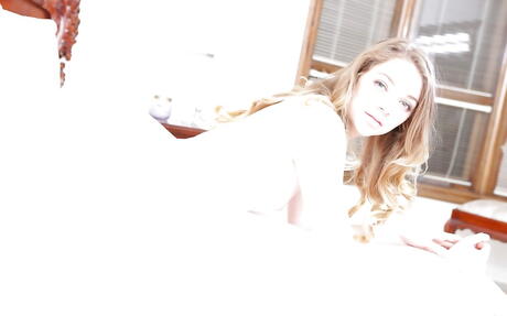 Gracile american teen Jessie Andrews uncovering small tits and spreading her legs
