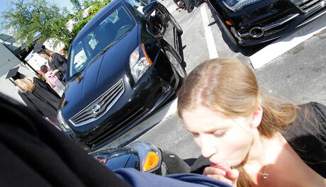 Gracile american youthful Alex Chance drilled in her hairy beaver after wet blowjob outside