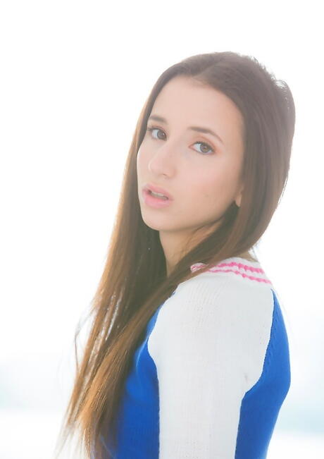 Gracile american youthful Belle Knox exposing tiny tits and sexy ass