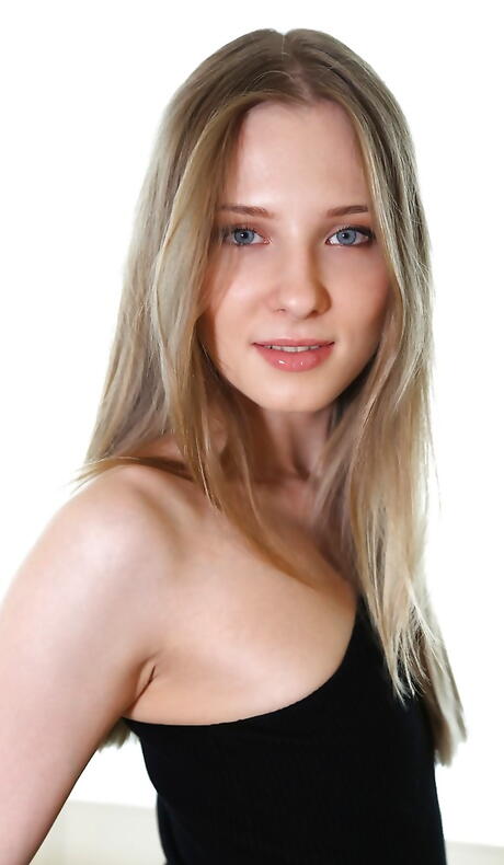 Gracile blond babe Nimfa exhibits small tits and puts a toy in her twat