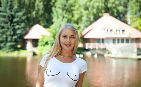 Gracile blonde young Sarika A in foot fetish show outdoor