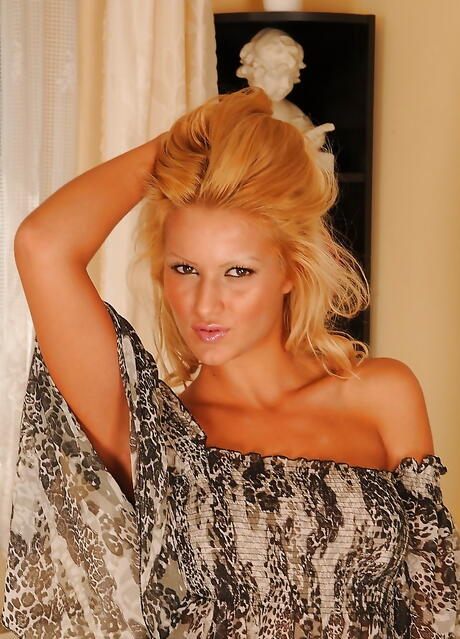 Gracile british blond teen Cherry Kiss in hot panties showing big knockers and spreading her legs
